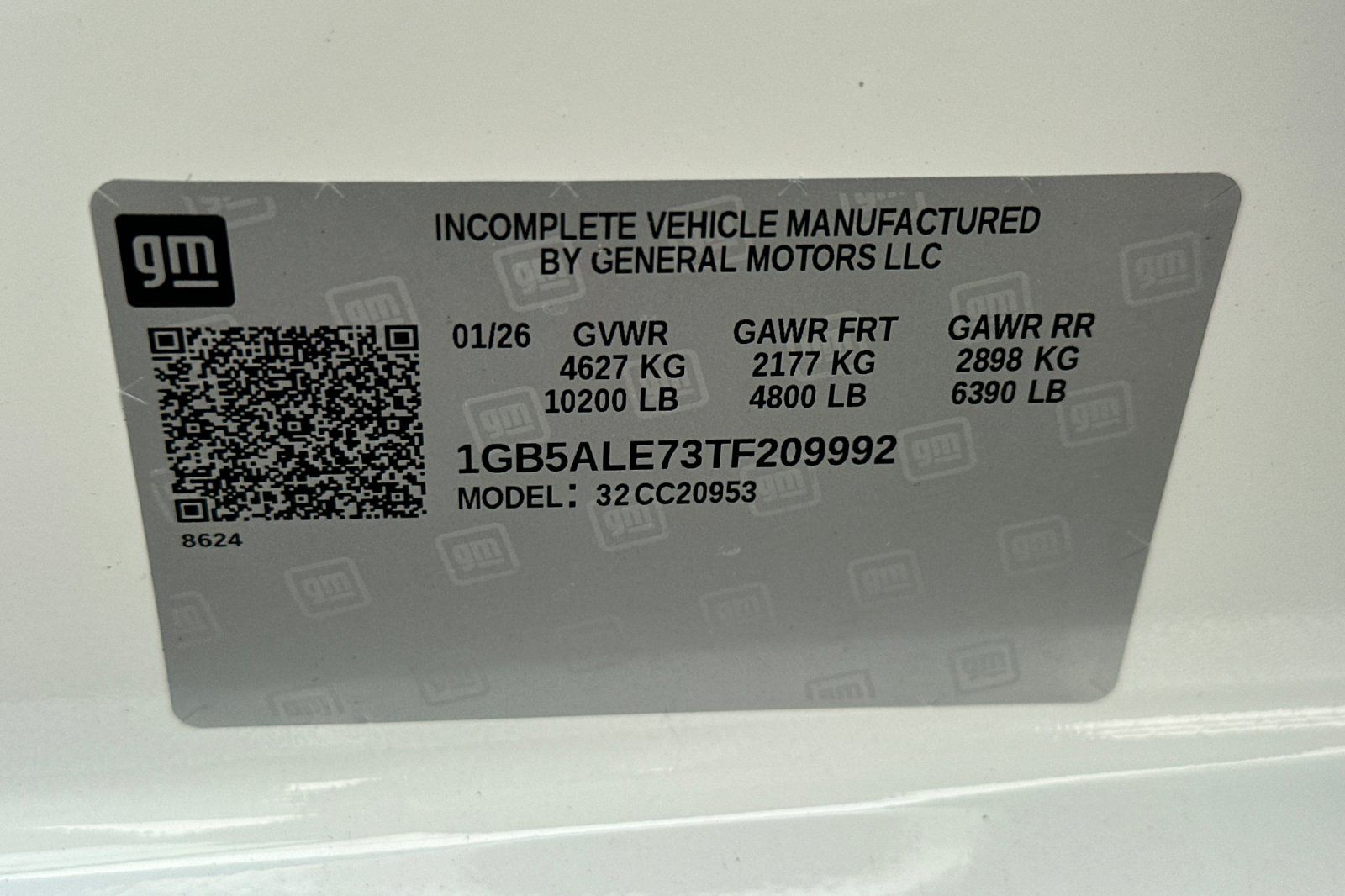 - VIN : 1GB5ALE73TF209992