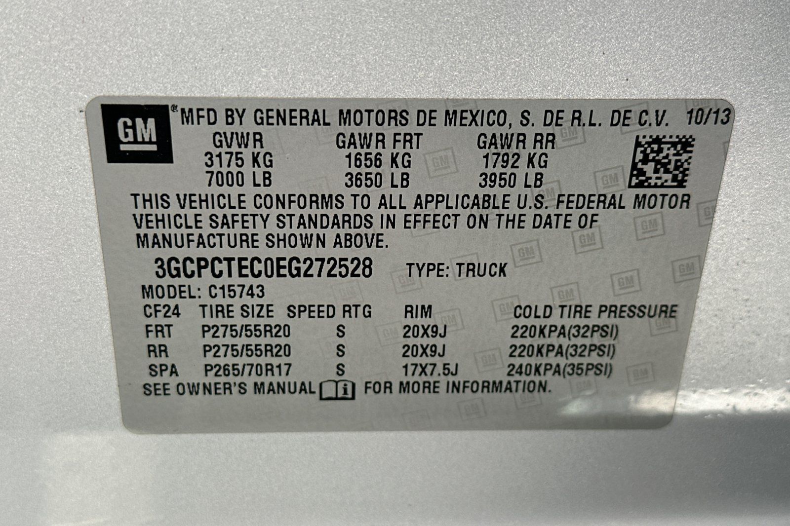 - VIN : 3GCPCTEC0EG272528