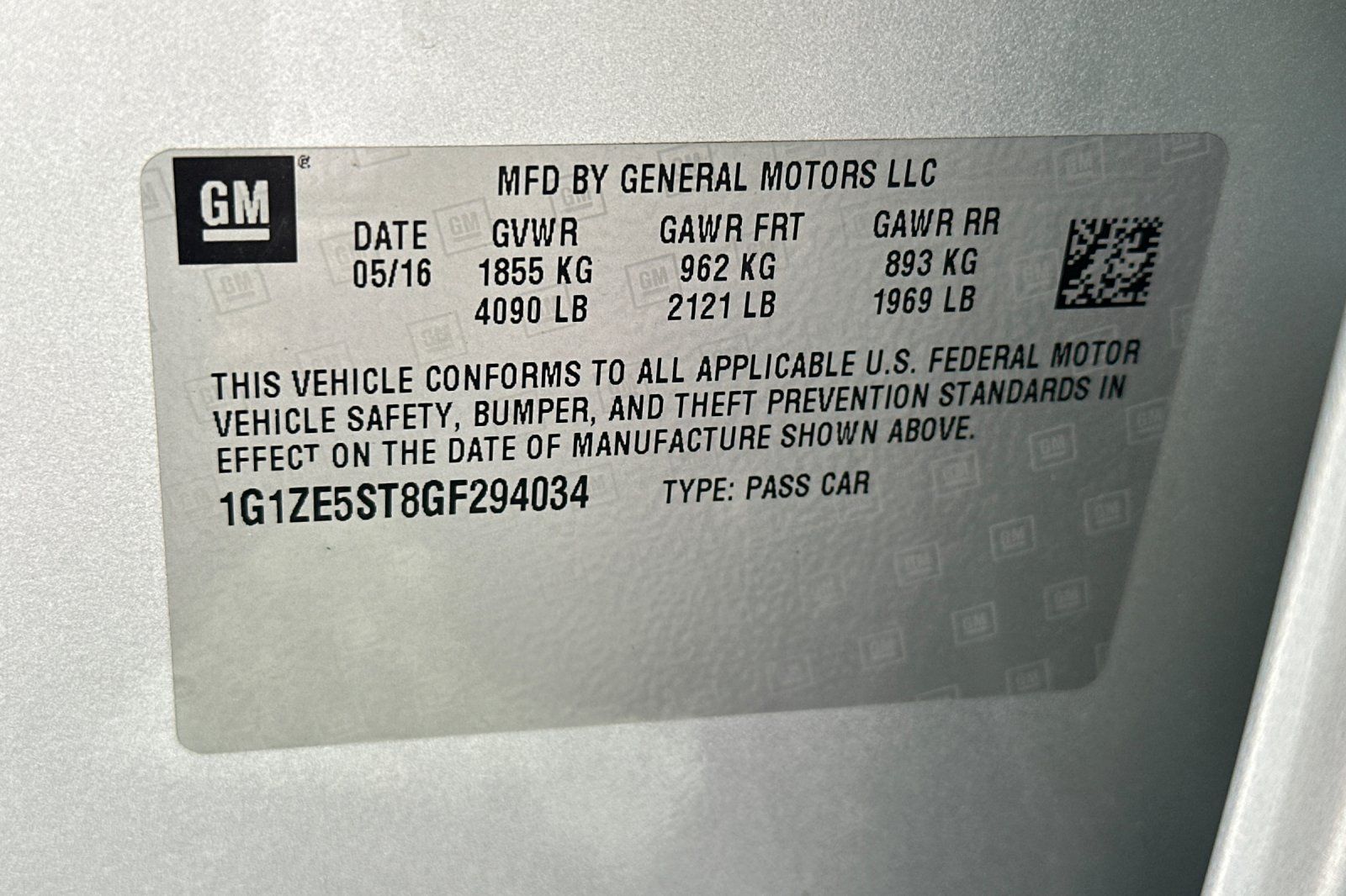 - VIN : 1G1ZE5ST8GF294034