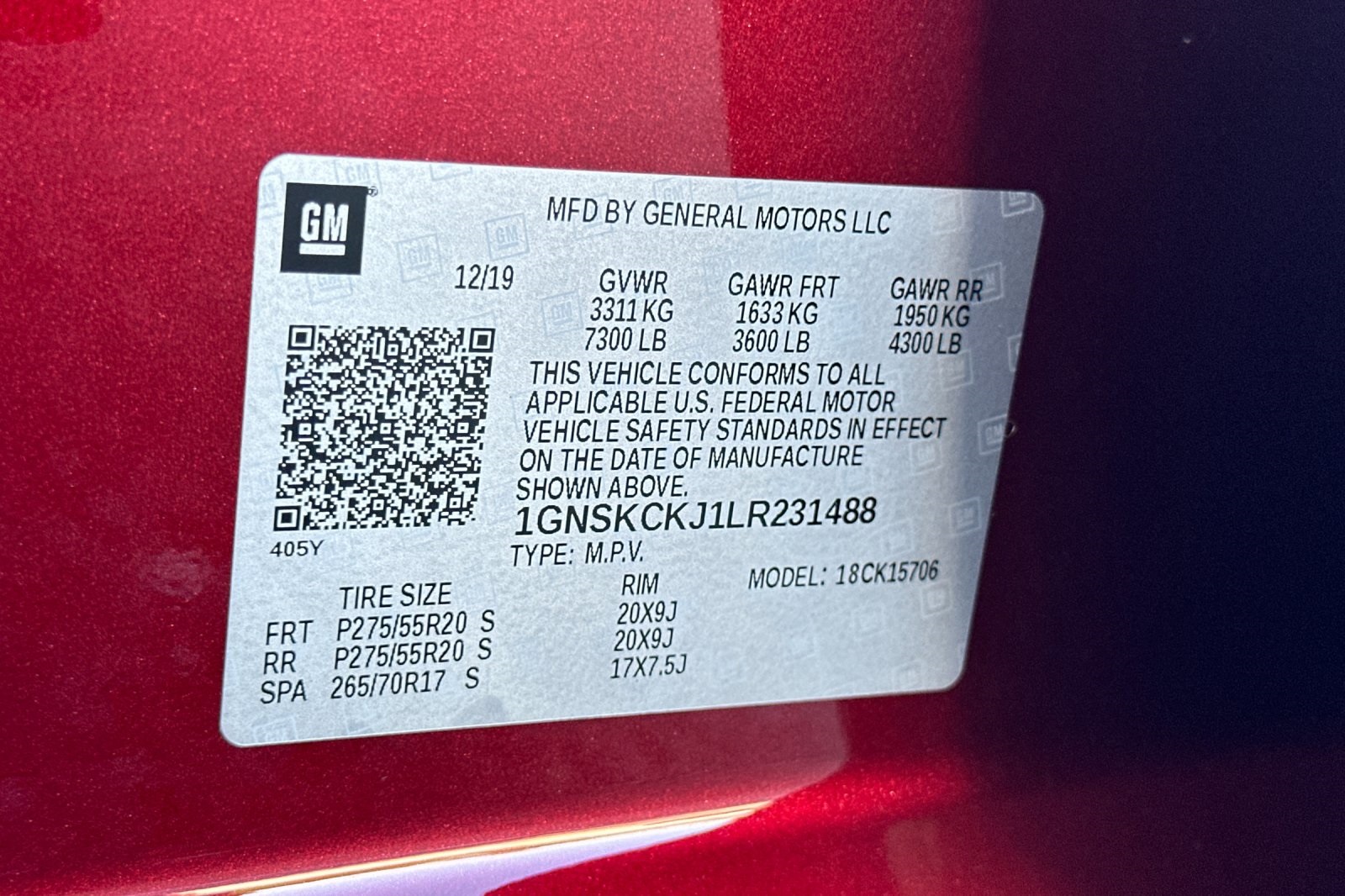 - VIN : 1GNSKCKJ1LR231488