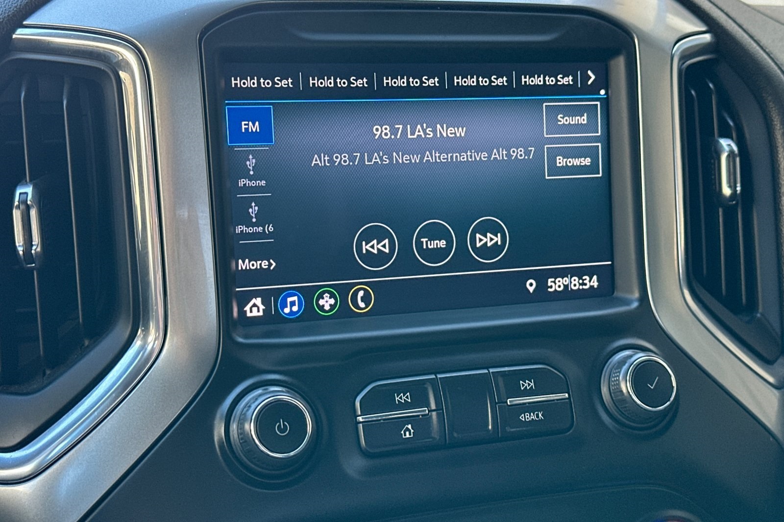 - Audio system, Chevrolet Infotainment 3 system 8" diagonal color touchscreen, AM/FM stereo. Additional features for compatible phones include: Bluetooth audio streaming for 2 active devices, voice command pass-through to phone, wired Apple CarPlay and Android Auto capable.