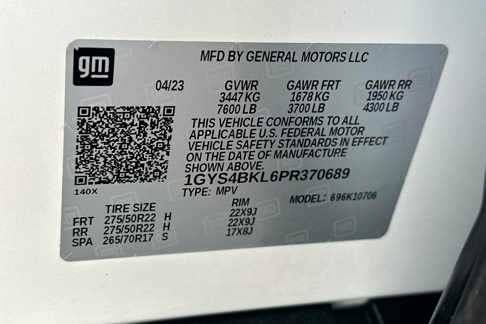 - VIN : 1GYS4BKL6PR370689