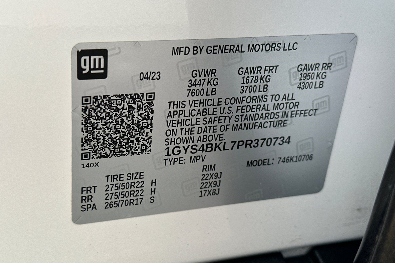 - VIN : 1GYS4BKL7PR370734
