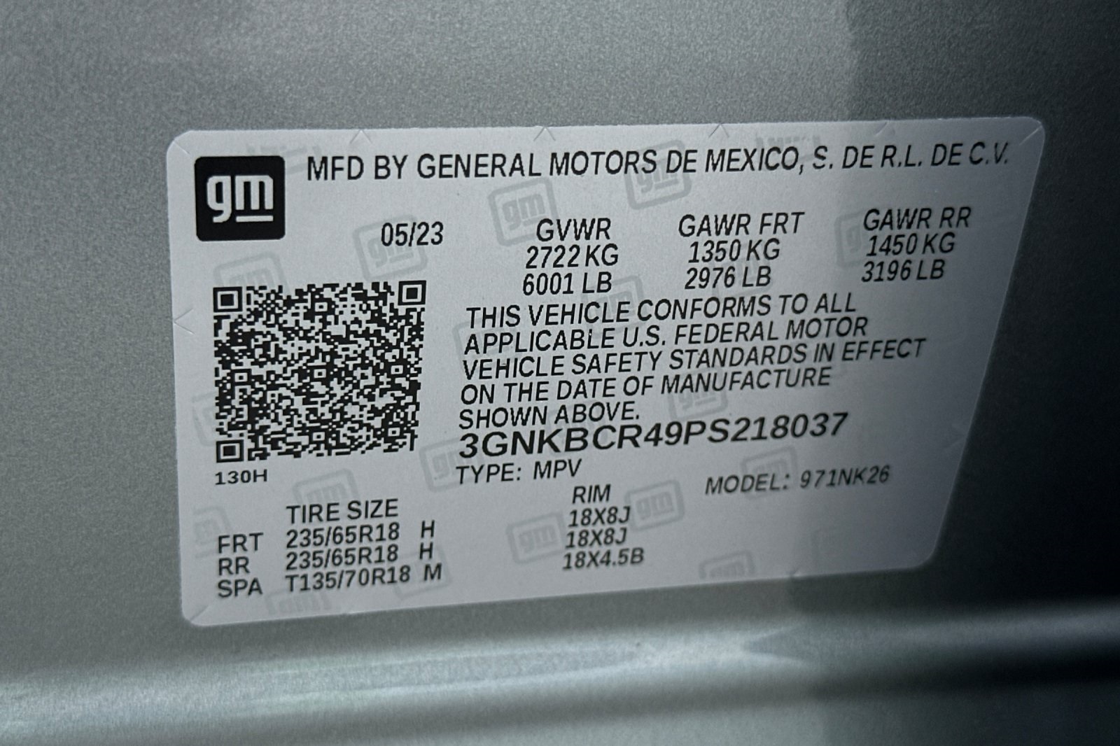 - VIN : 3GNKBCR49PS218037