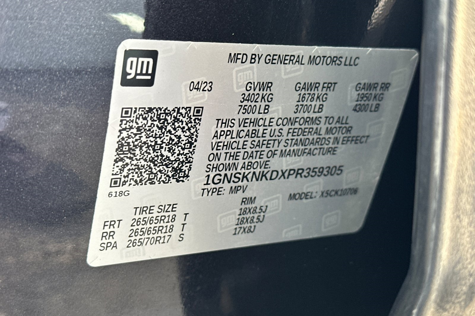 - VIN : 1GNSKNKDXPR359305