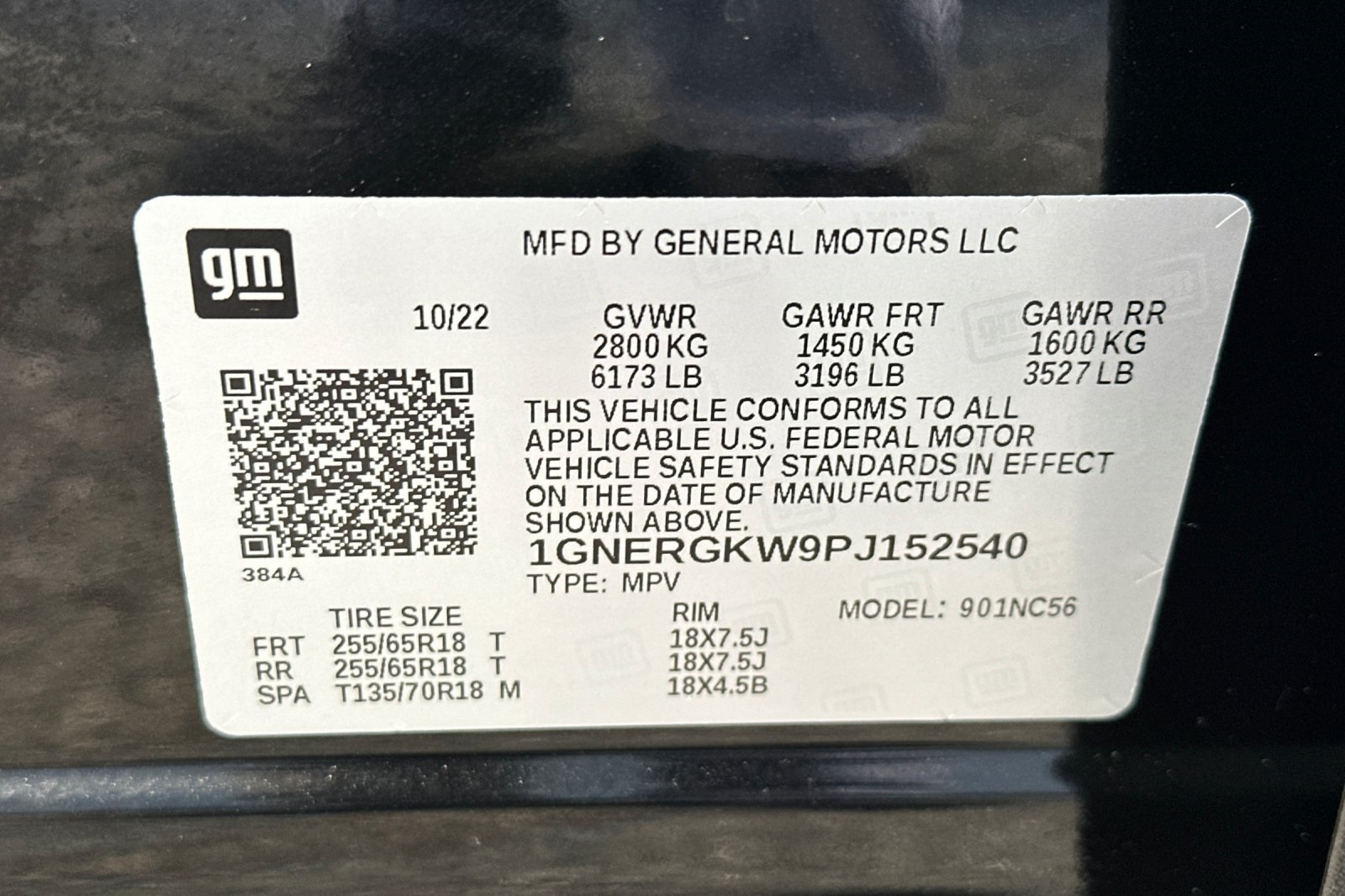 - VIN : 1GNERGKW9PJ152540