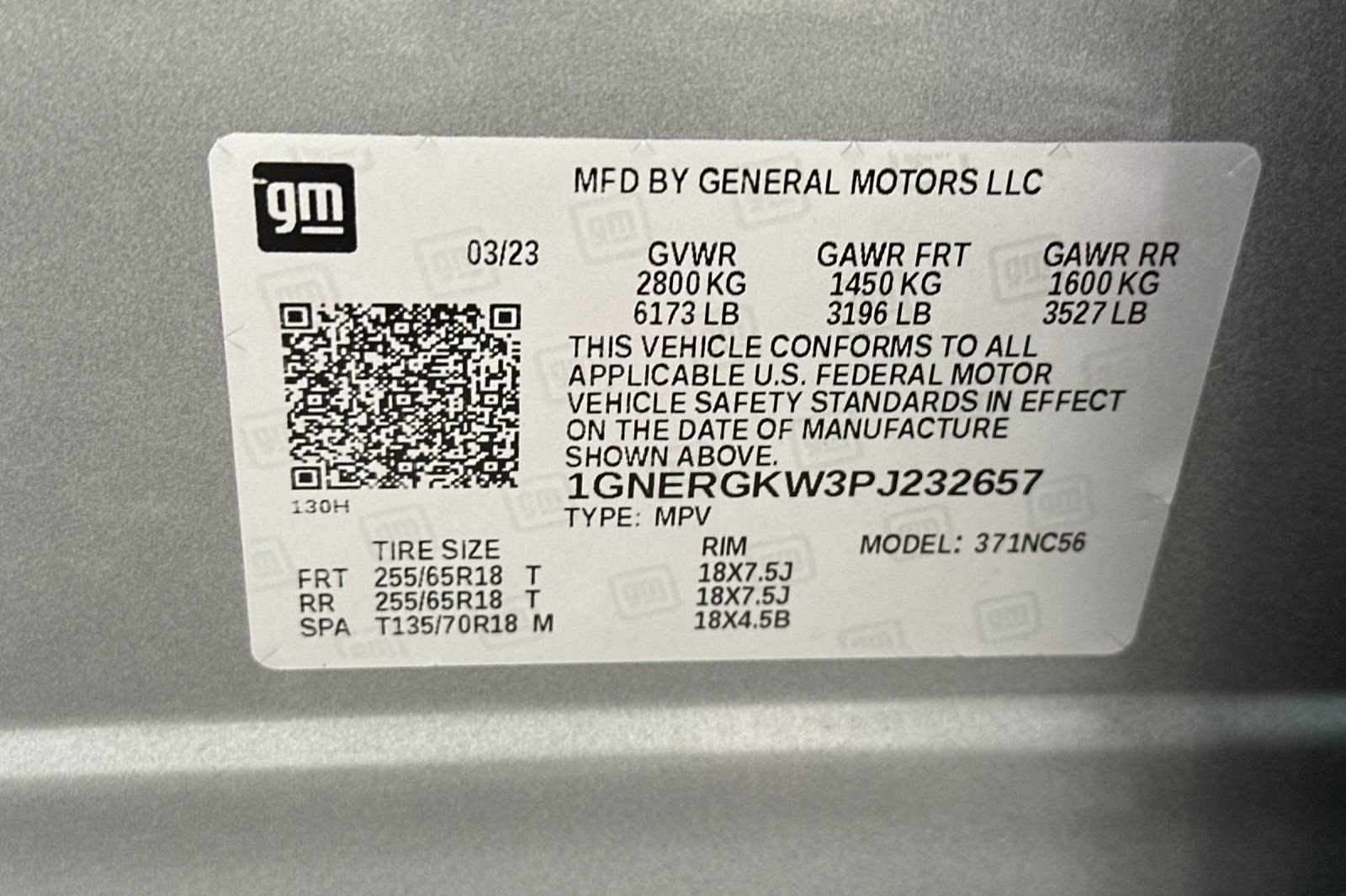 - VIN : 1GNERGKW3PJ232657
