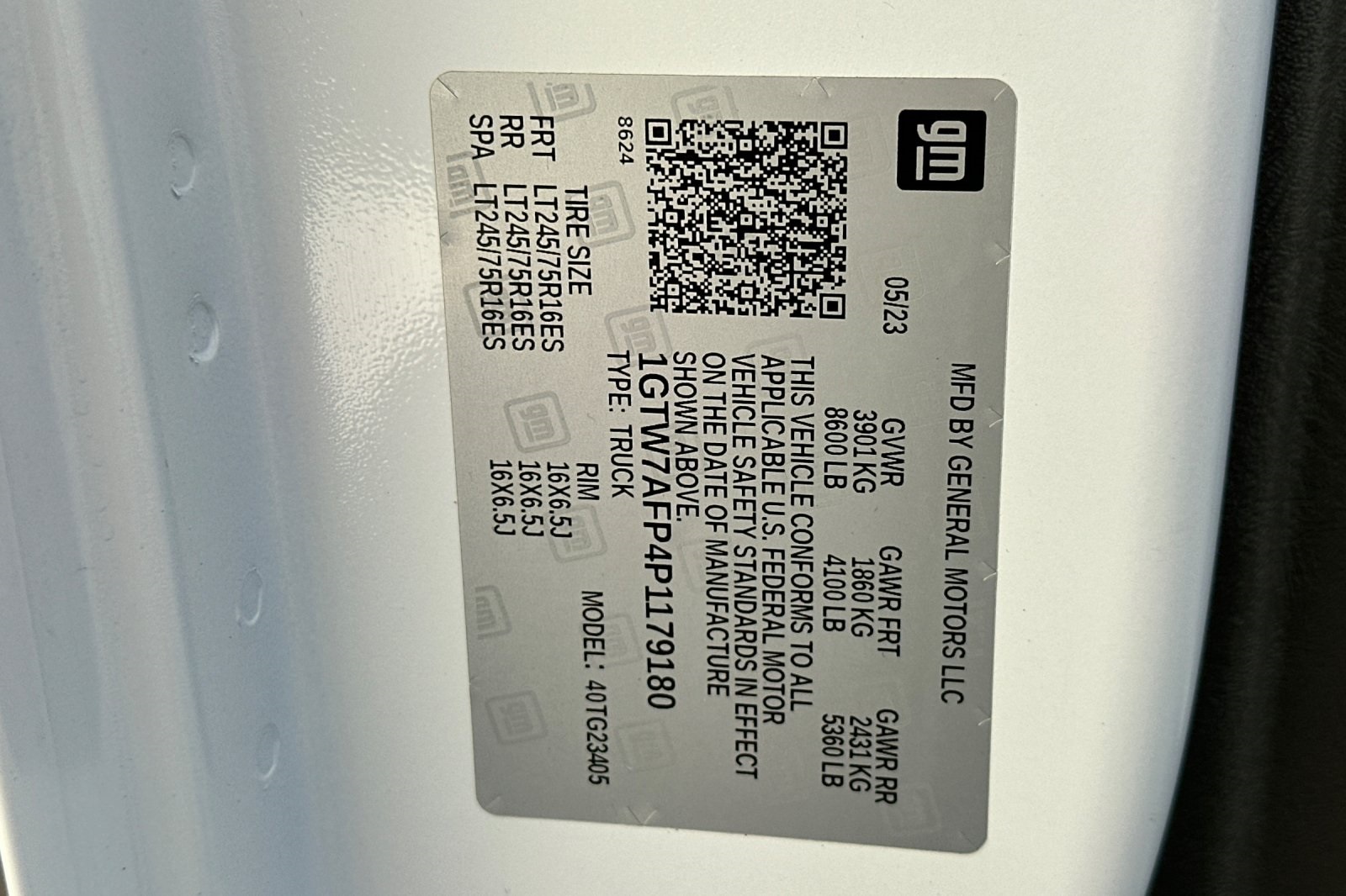 - VIN : 1GTW7AFP4P1179180
