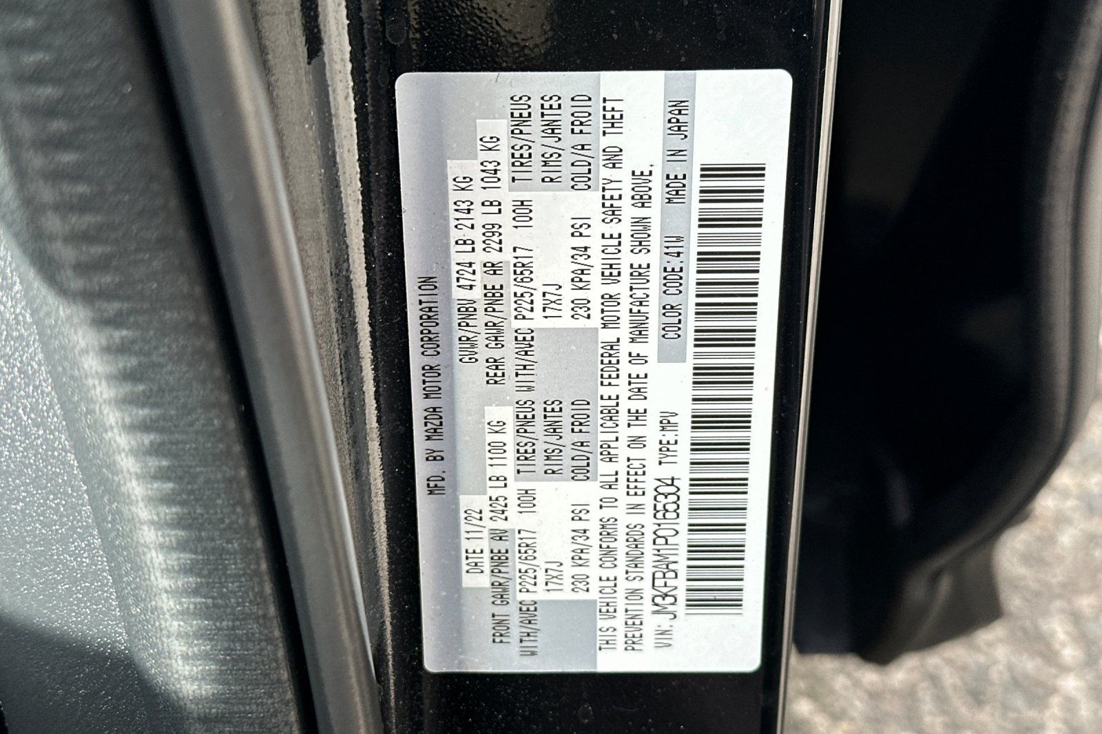 - VIN : JM3KFBAM1P0165304