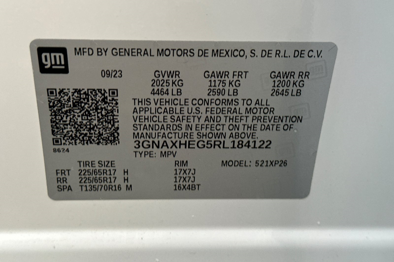 - VIN : 3GNAXHEG5RL184122