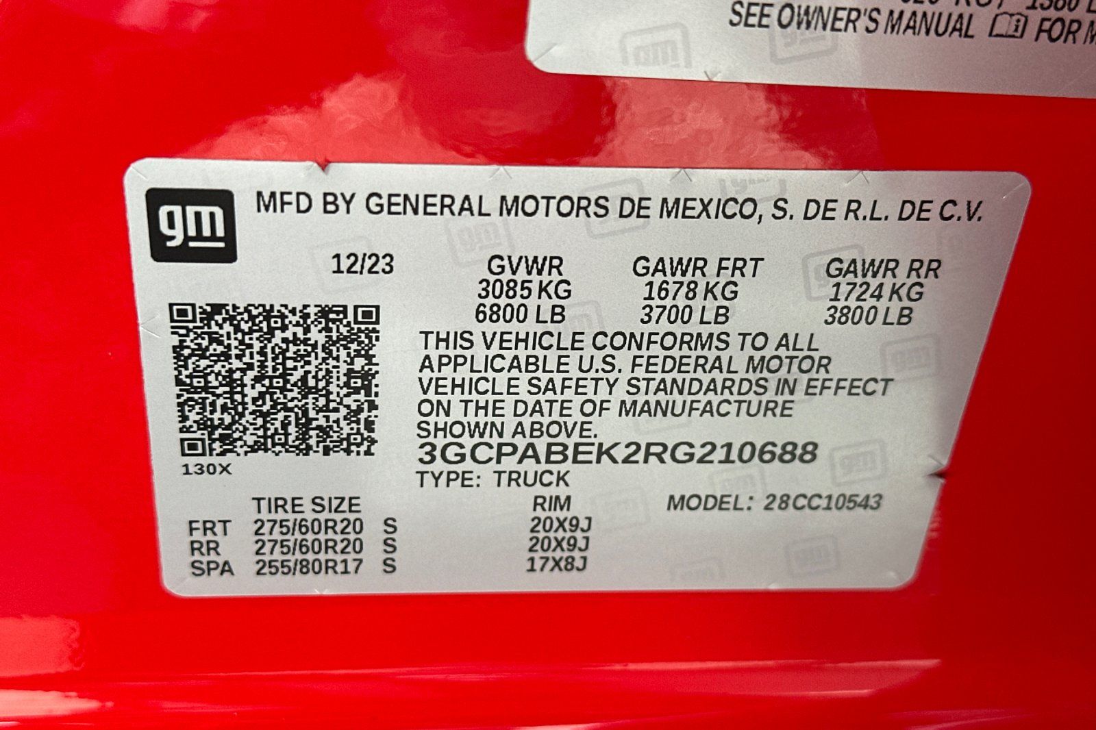 - VIN : 3GCPABEK2RG210688