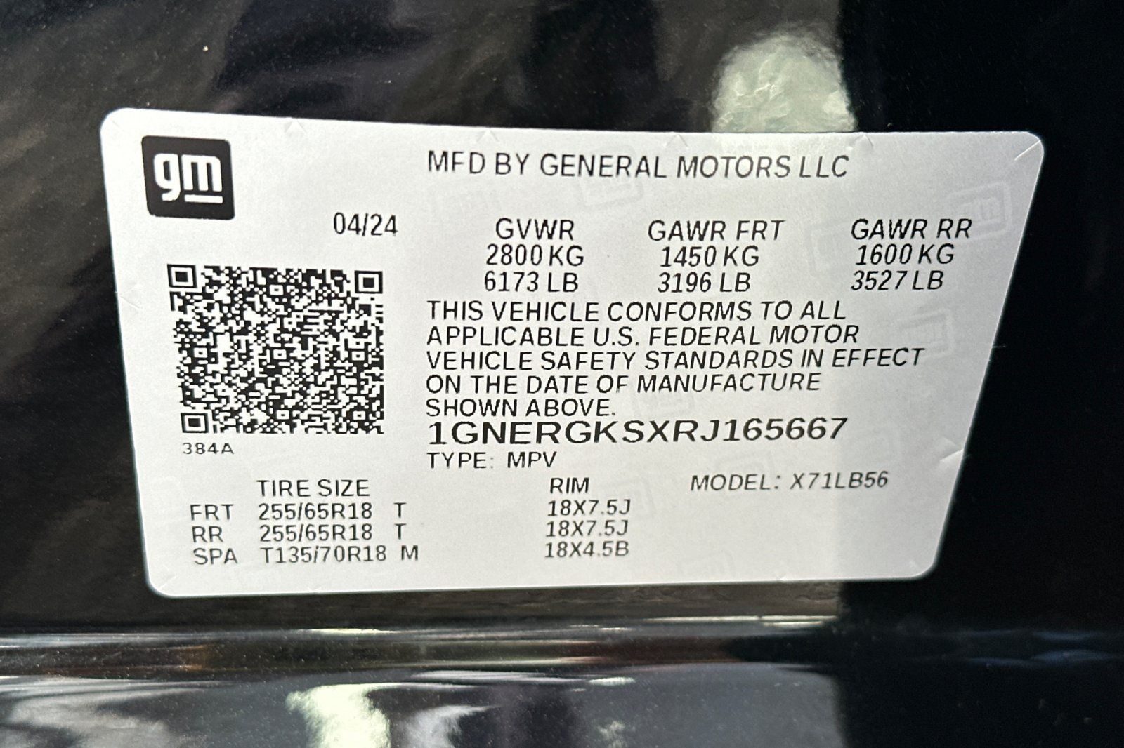 - VIN : 1GNERGKSXRJ165667