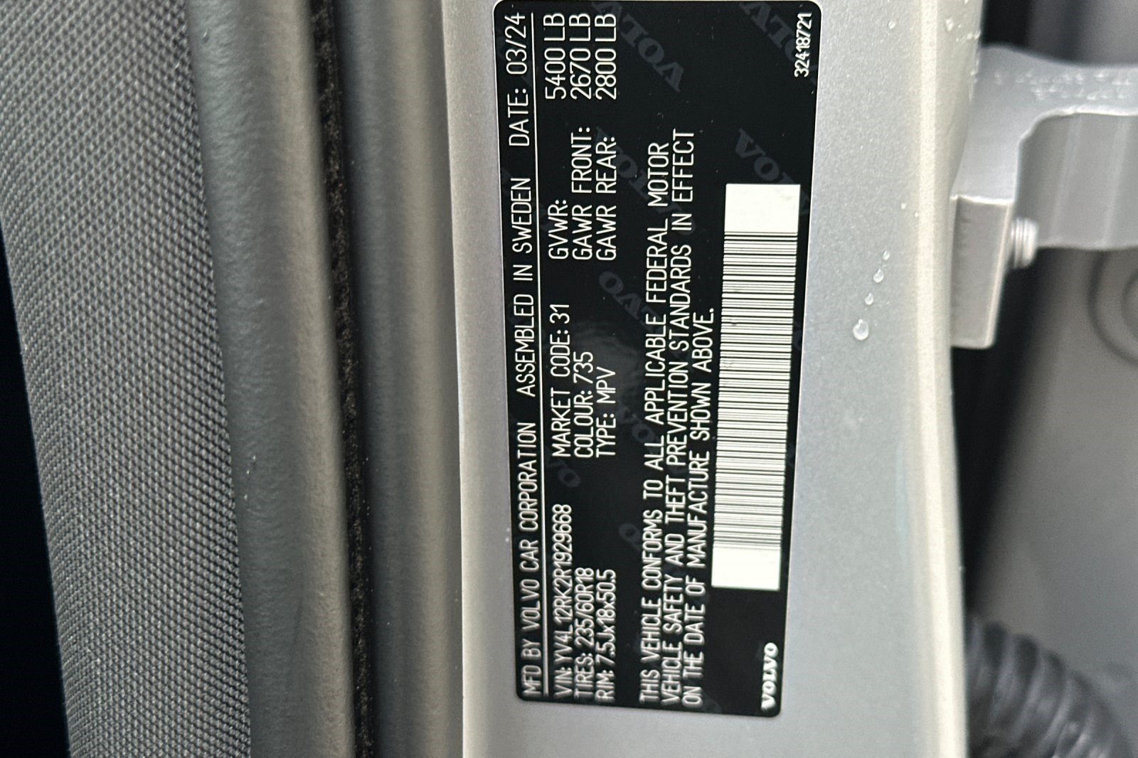 - VIN : YV4L12RK2R1929668